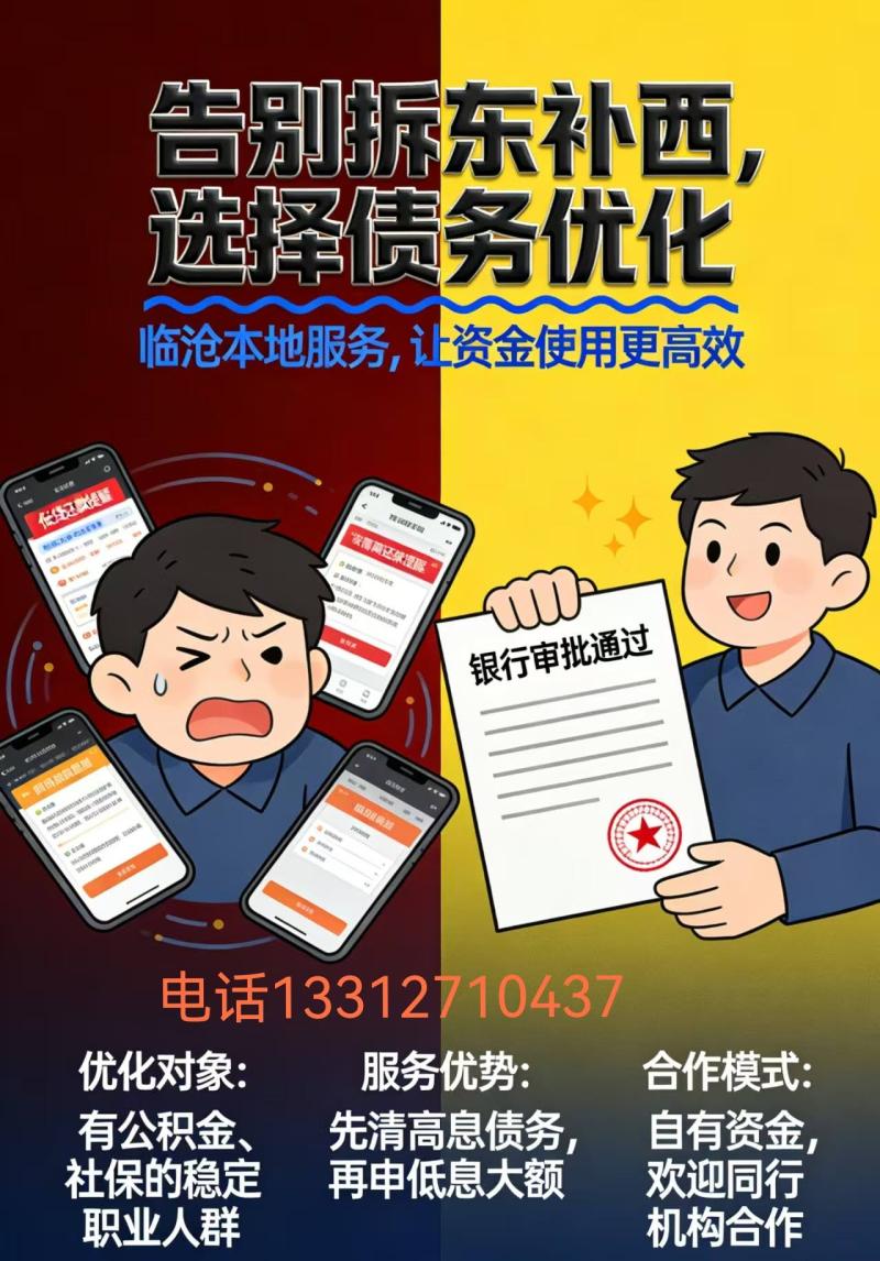 如果你网贷多月供高,征信花有历史逾期,正规渠道不批款,还款压力大正在陷入以贷养贷的困境,我们可以帮你把高息置换成正规低息(年化3.6%以内),额度30-200w,帮你匹配最合适的产品及方案,减轻还款压力,扩大资金使用率,合理规划负债;联系****(微信同号)